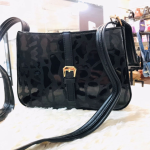 کیف دوشی مجلسی یک خانه رویه ورنی بند بلند سایز متوسط تک رنگ مشکی رویه سگک دار